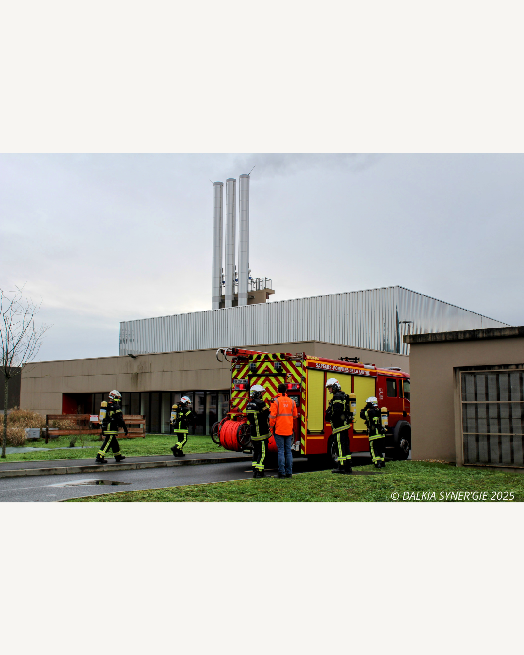 Le lundi 22 décembre 2025, la chaufferie des Bords de l'Huisne de Syner'gie, gérée par Dalkia, a été le théâtre d'un exercice incendie grandeur nature, organisé en étroite collaboration avec les Sapeurs-Pompiers des Centres d’Incendies et de Secours Manceaux (SDIS 72).